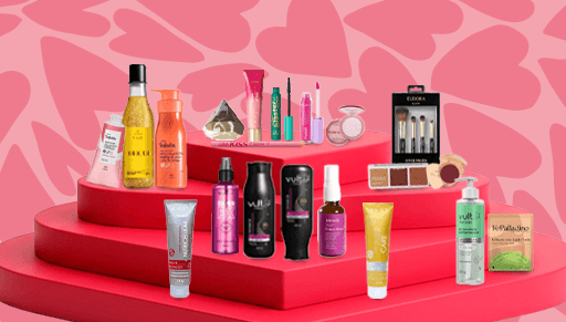 Produtos personalizados: No minimo 5 produtos de beleza das categorias: maquiagem pele e cabelo, de acordo com o seu perfil.