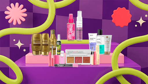 Produtos personalizados: No minimo 5 produtos de beleza das categorias: maquiagem pele e cabelo, de acordo com o seu perfil.